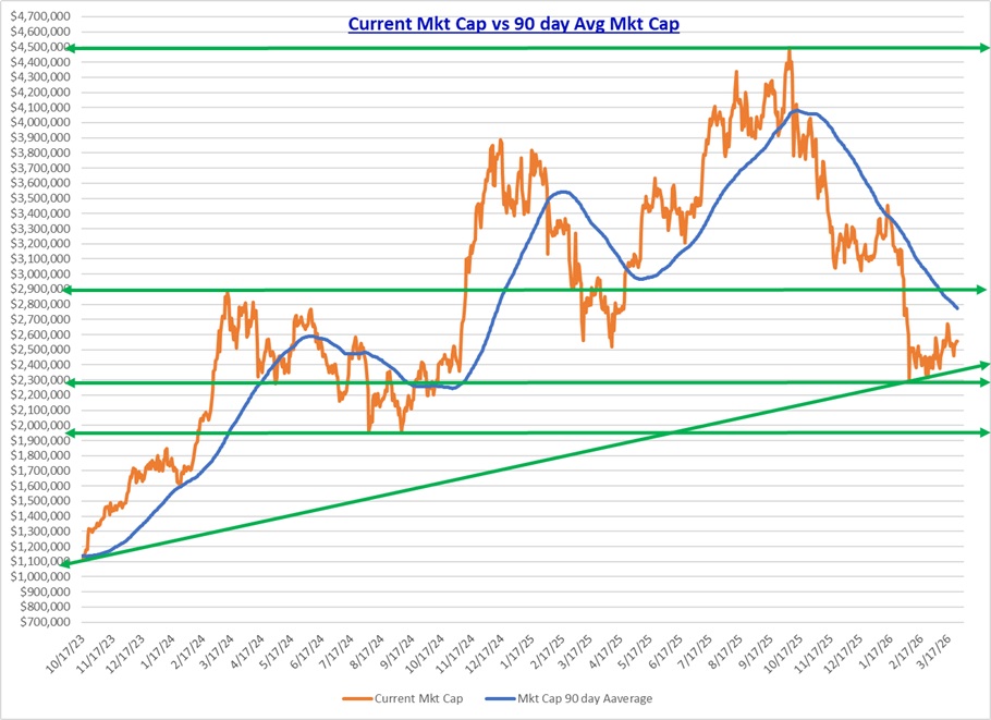 Current vs 90 day average of Crypto Mkt Cap